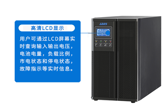 用戶可通過LCD屏幕實(shí)時(shí)查詢輸入輸出電壓,電池電量,負(fù)載比例,市電狀態(tài)和停電狀態(tài),故障指示等實(shí)時(shí)信息。